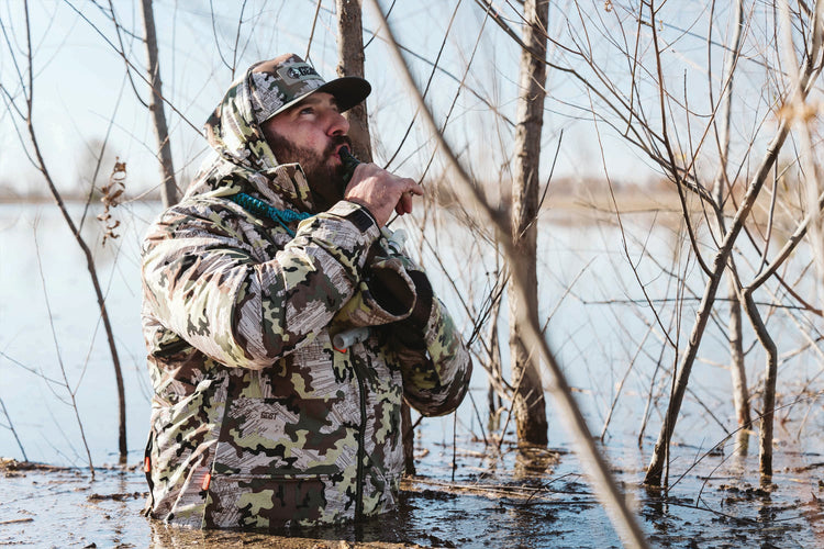 Our Belleau Husk pattern takes inspiration from our founder’s great grandfather’s beloved farm. It was home to flowing water, migratory birds, and an abundance of thriving habitat. Belleau Husk was designed to pay homage to the hunting techniques passed down through generations on this farm. Our Belleau Husk camouflage utilizes a muted version of our signature Geist avocado green. This one-of-a-kind hybrid pattern includes minute details that emulate the ridges of a dry corn husk, while the larger textures form a unique cross between duck and woodland camo splotches. Ideal for hunting in brush country and semi arid deserts alike, our Belleau Husk camo provides maximum invisibility, and truly transforms you into a “ghost of the woods."